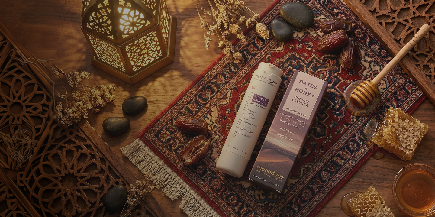 Rooted in Arabic ingredients and redefined through Korean bioscience, Moondune focuses on barrier health and hydration.